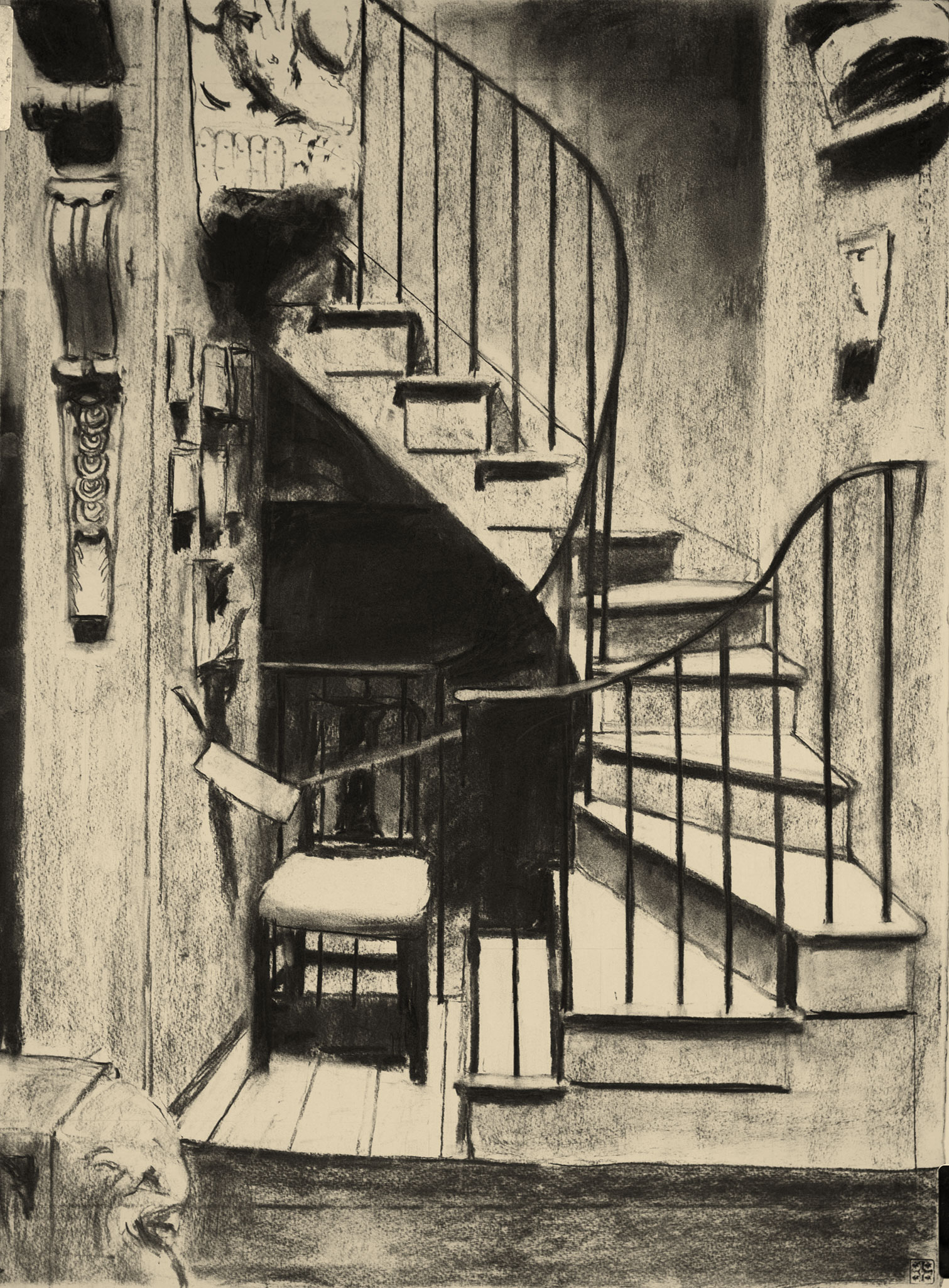 Cast of anthemion in Students’ Room charcoal 30 x 22
