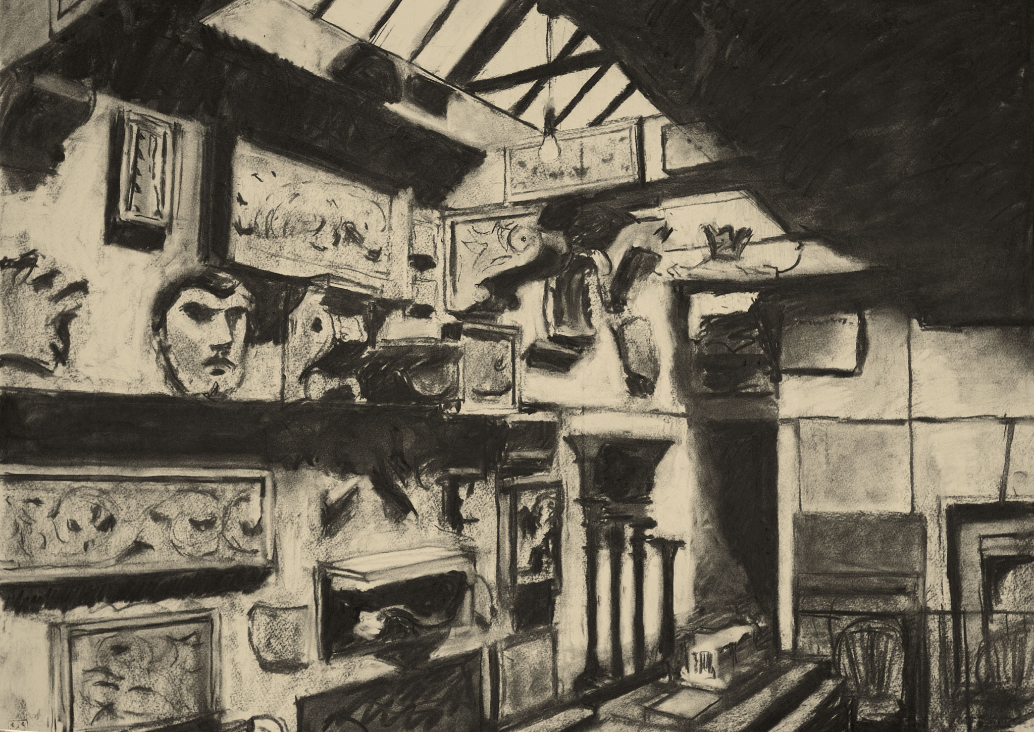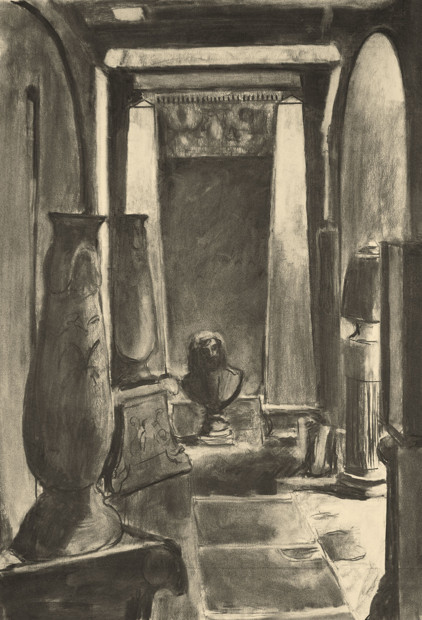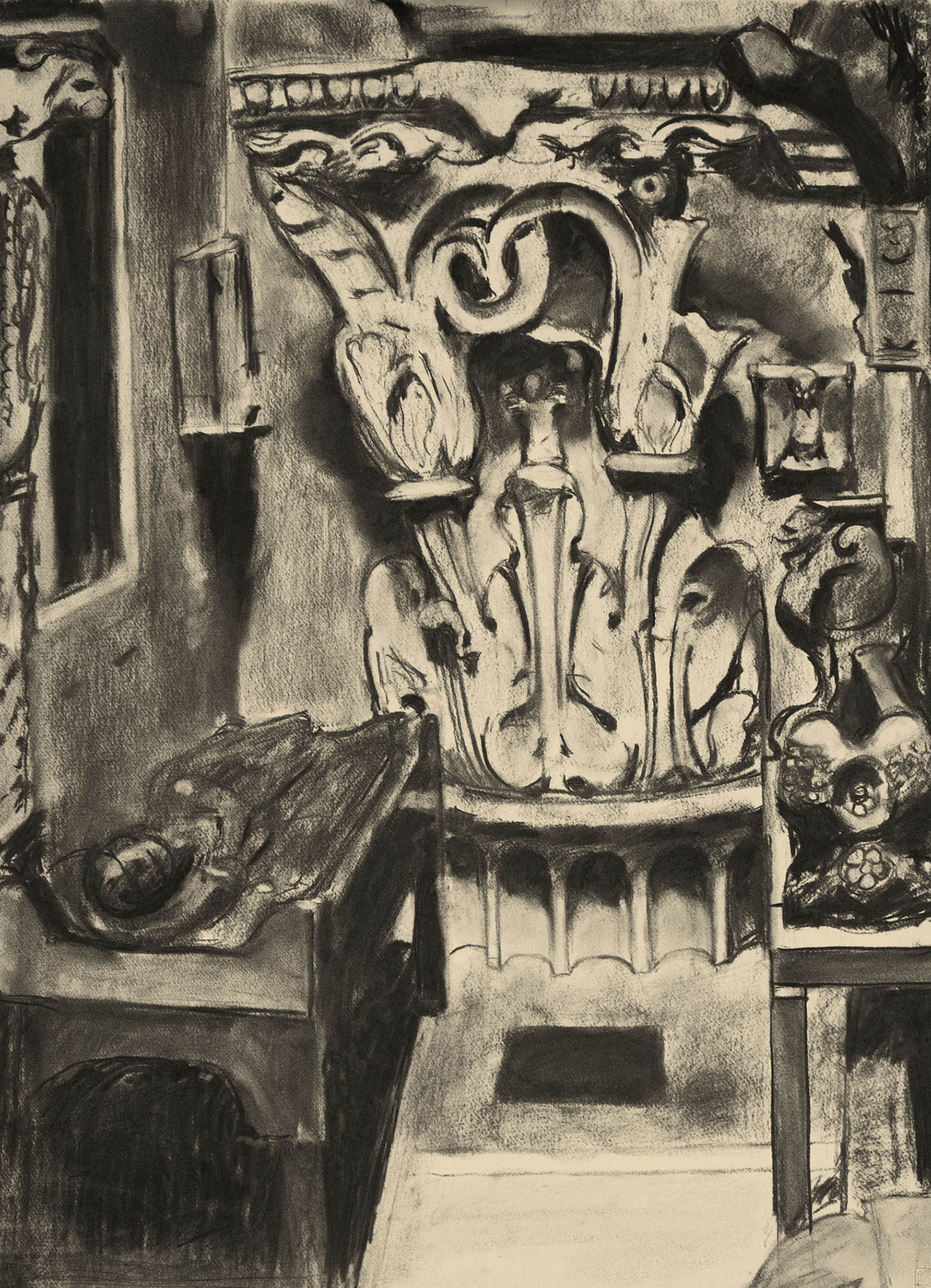 Cast of acroterion in Student’s Room charcoal 30 x 22