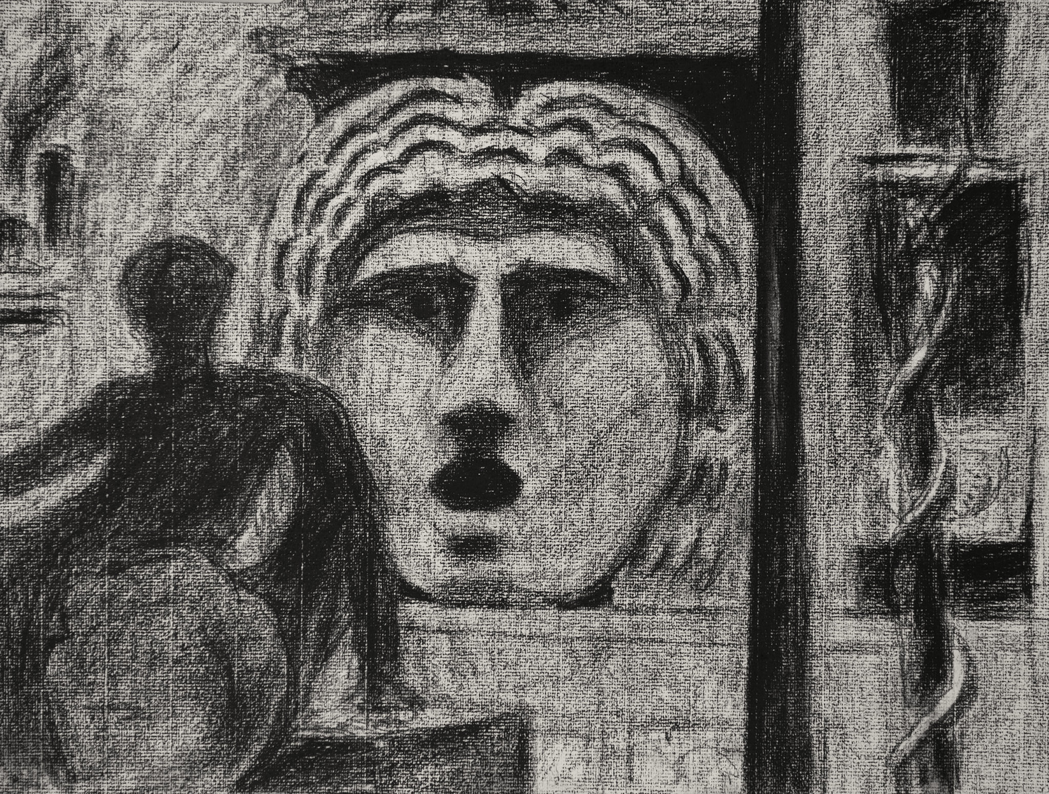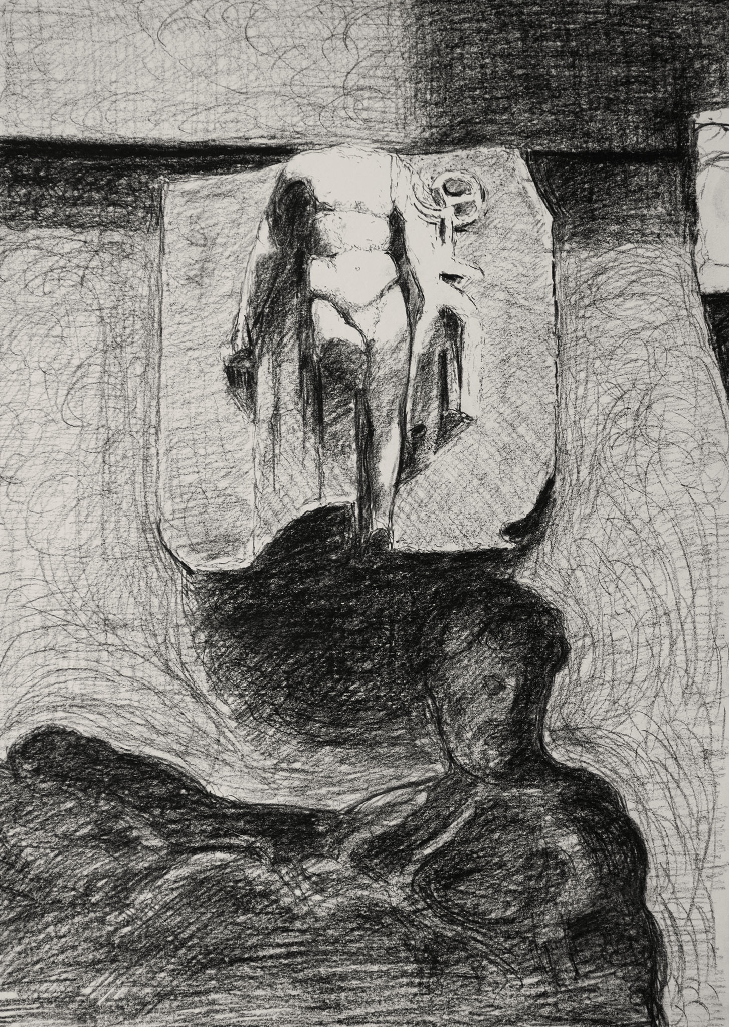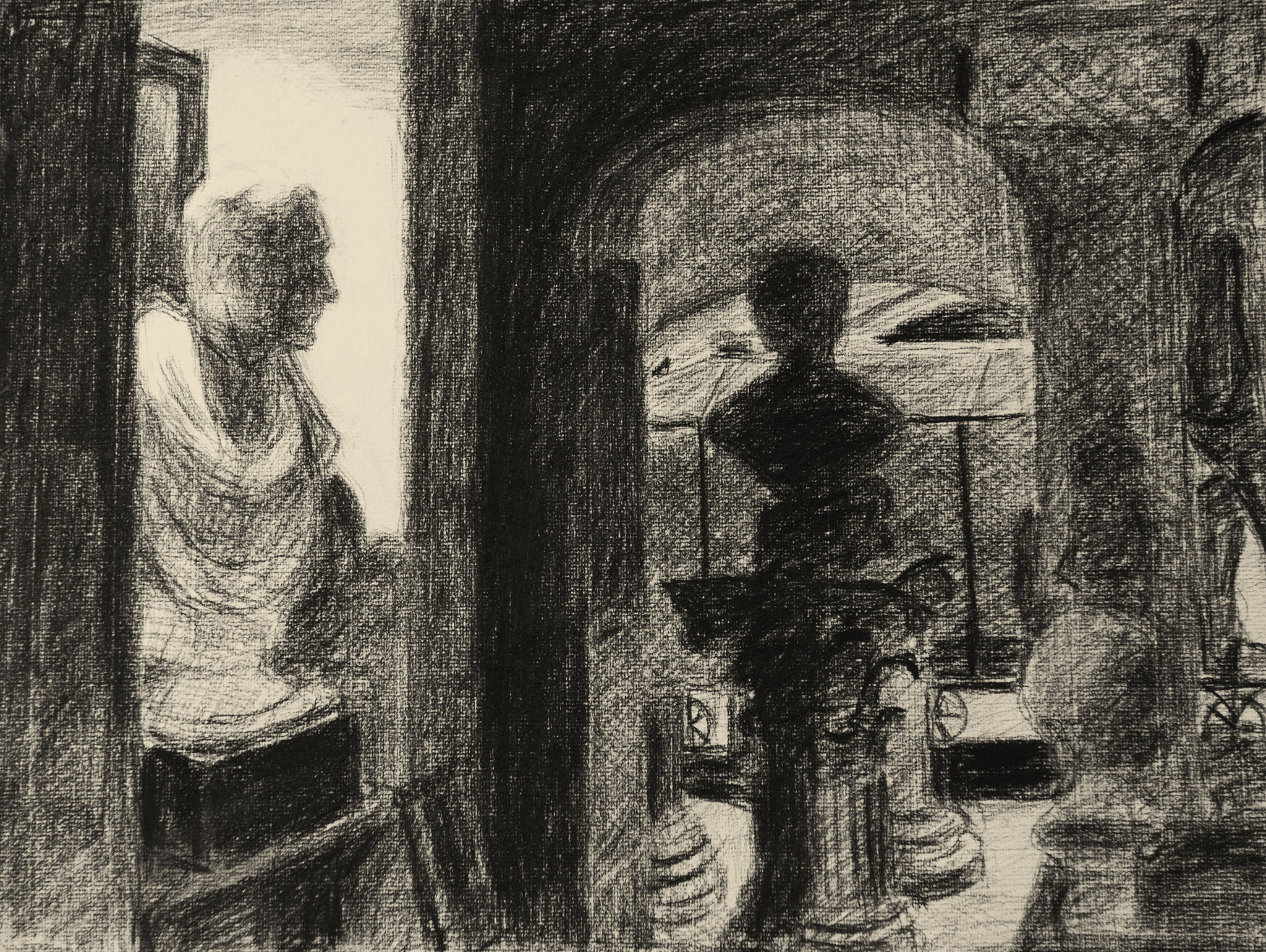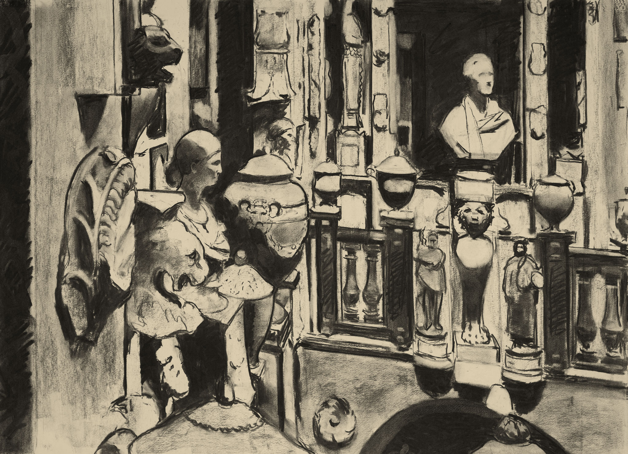 Cast of acroterion in Student’s Room charcoal 30 x 22
