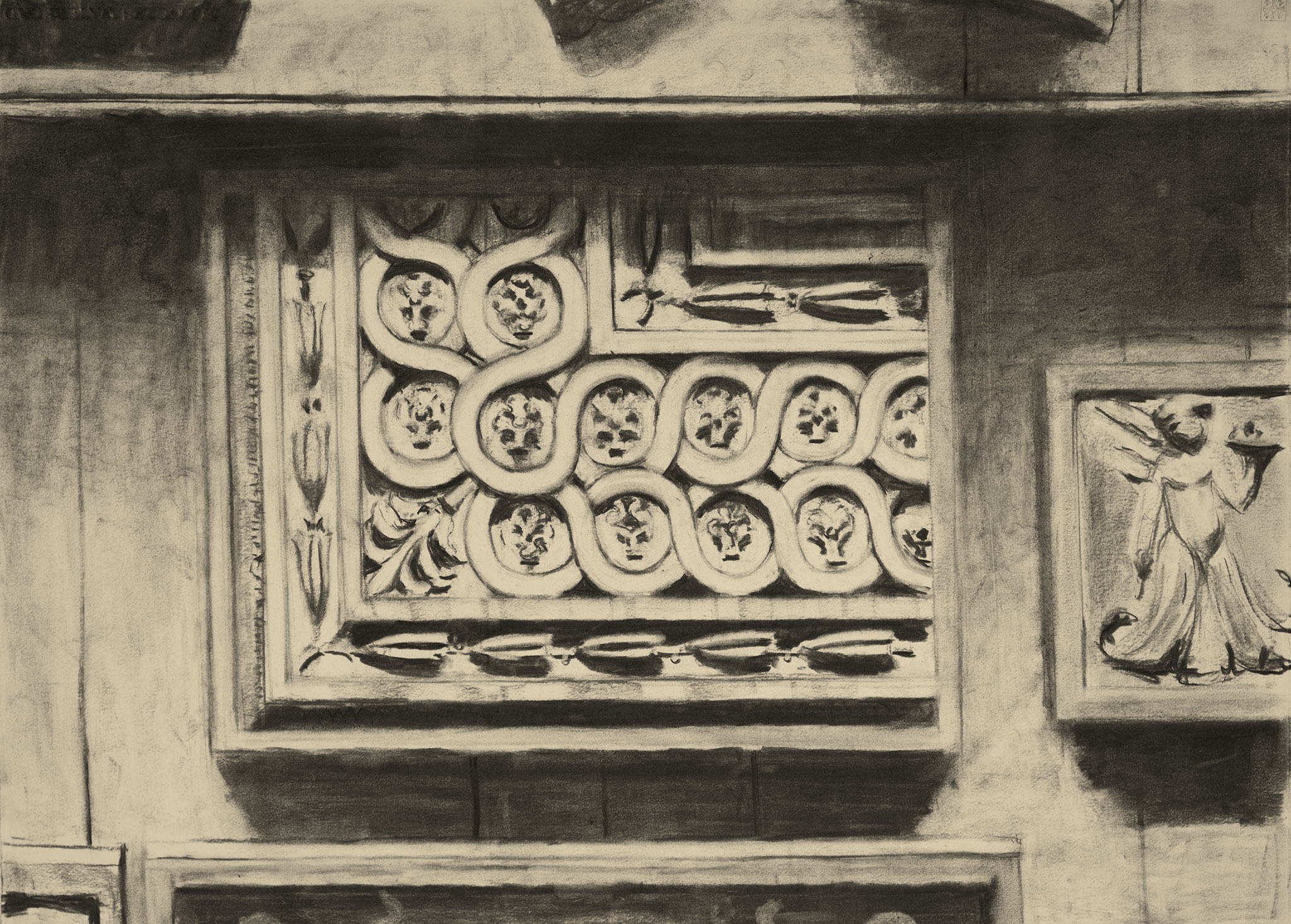 Cast of guilloche in Students’ Room charcoal 22 x 30