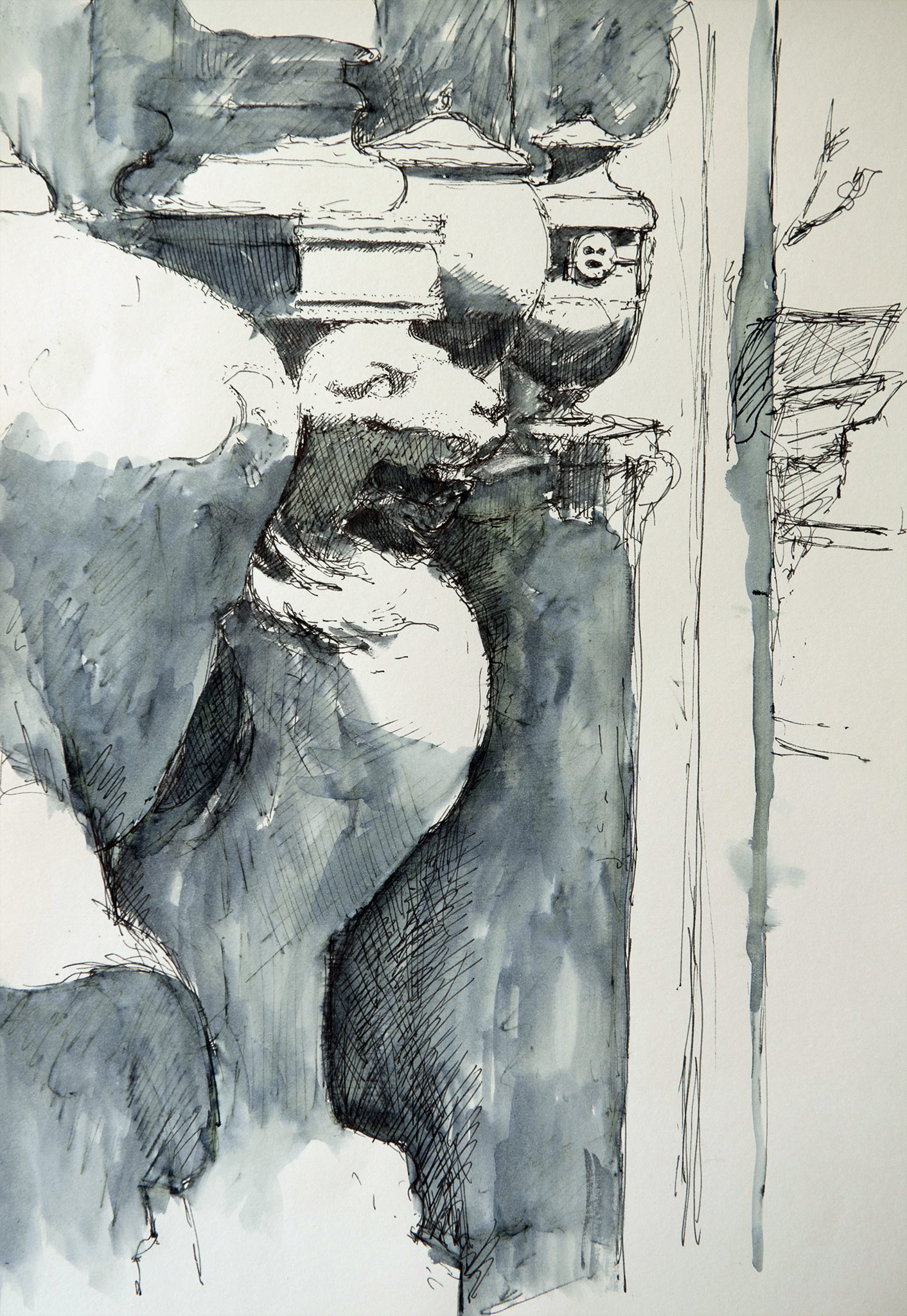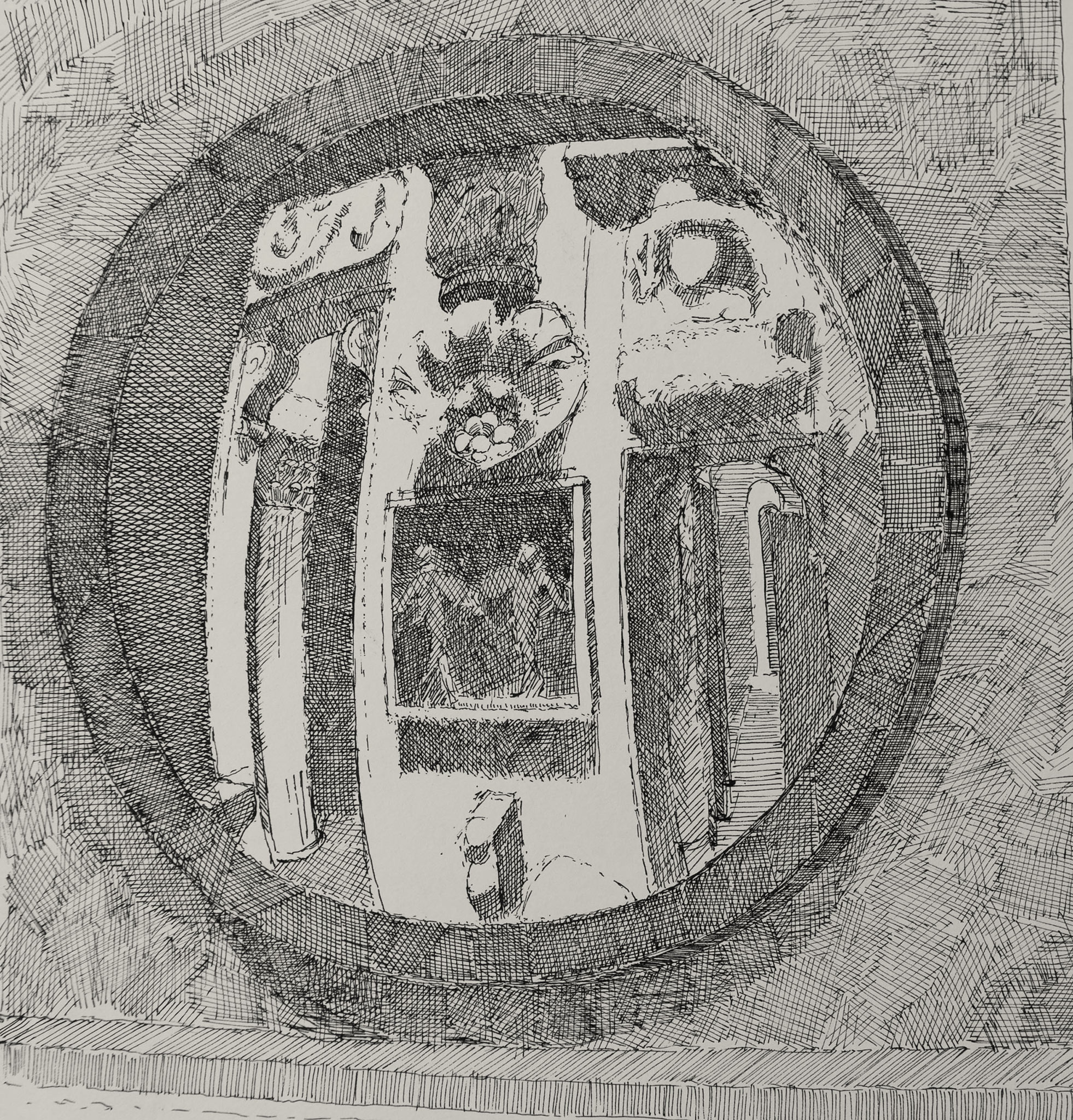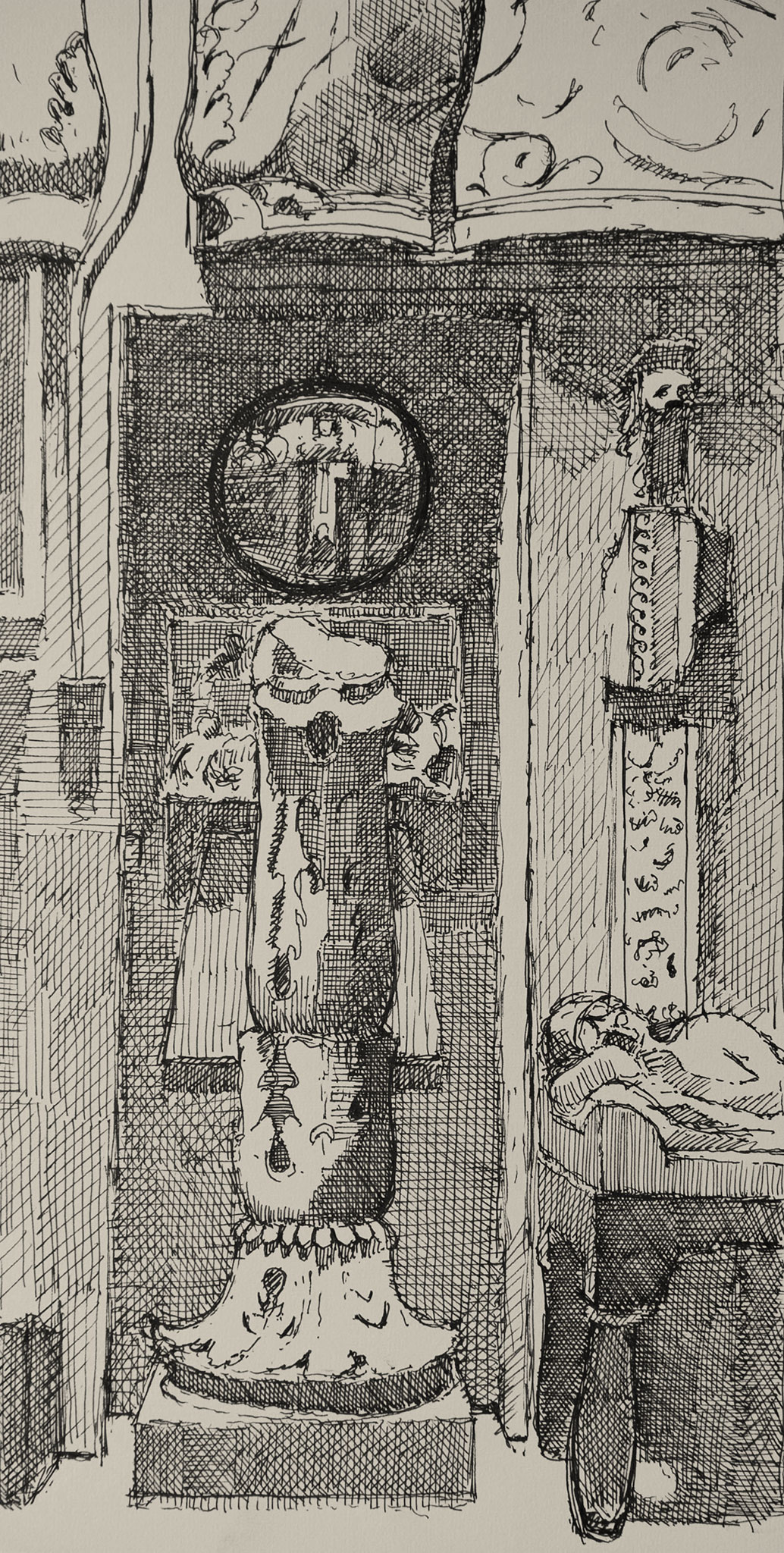 Mirror in the Museum Corridor pen and ink 10.5 x 12