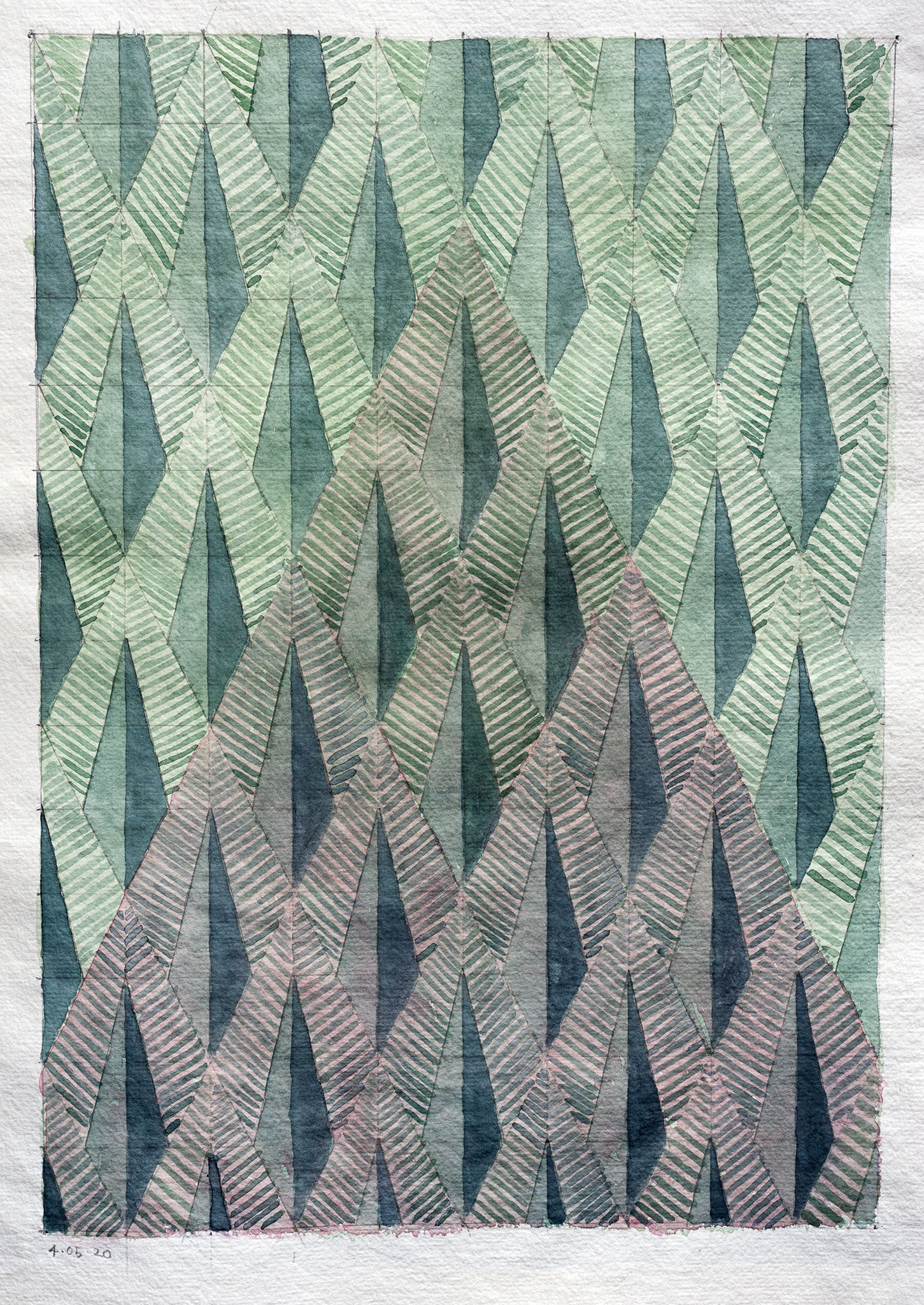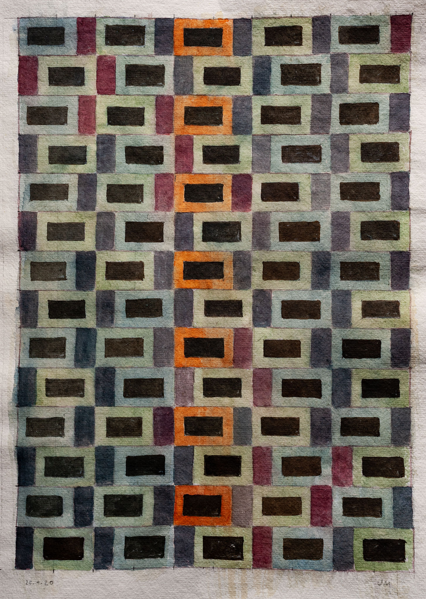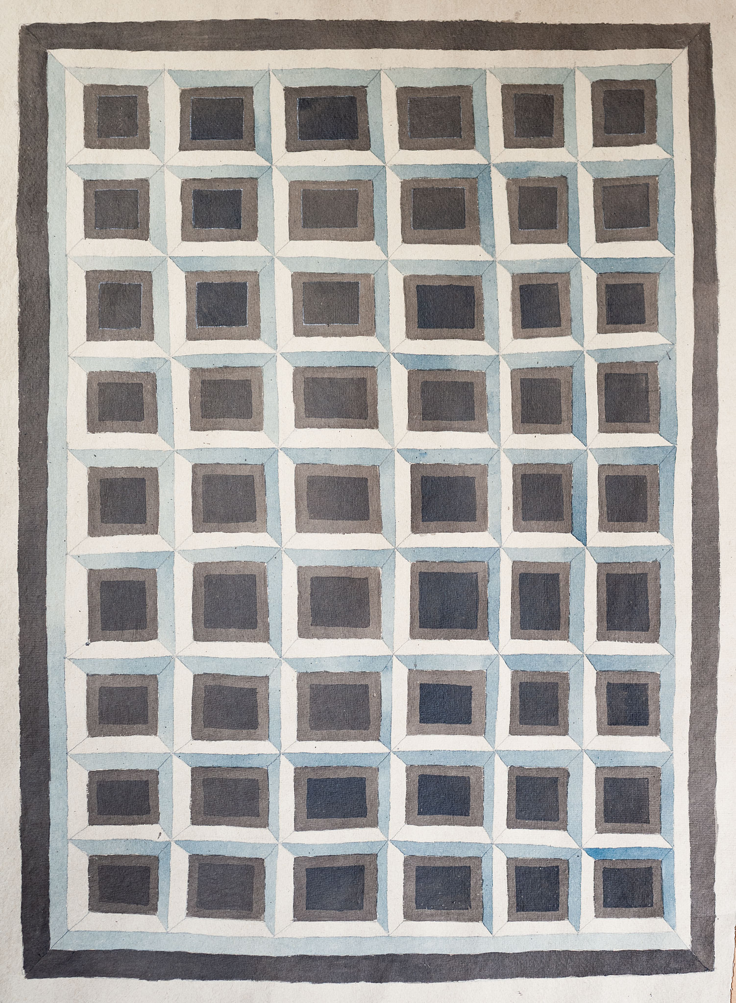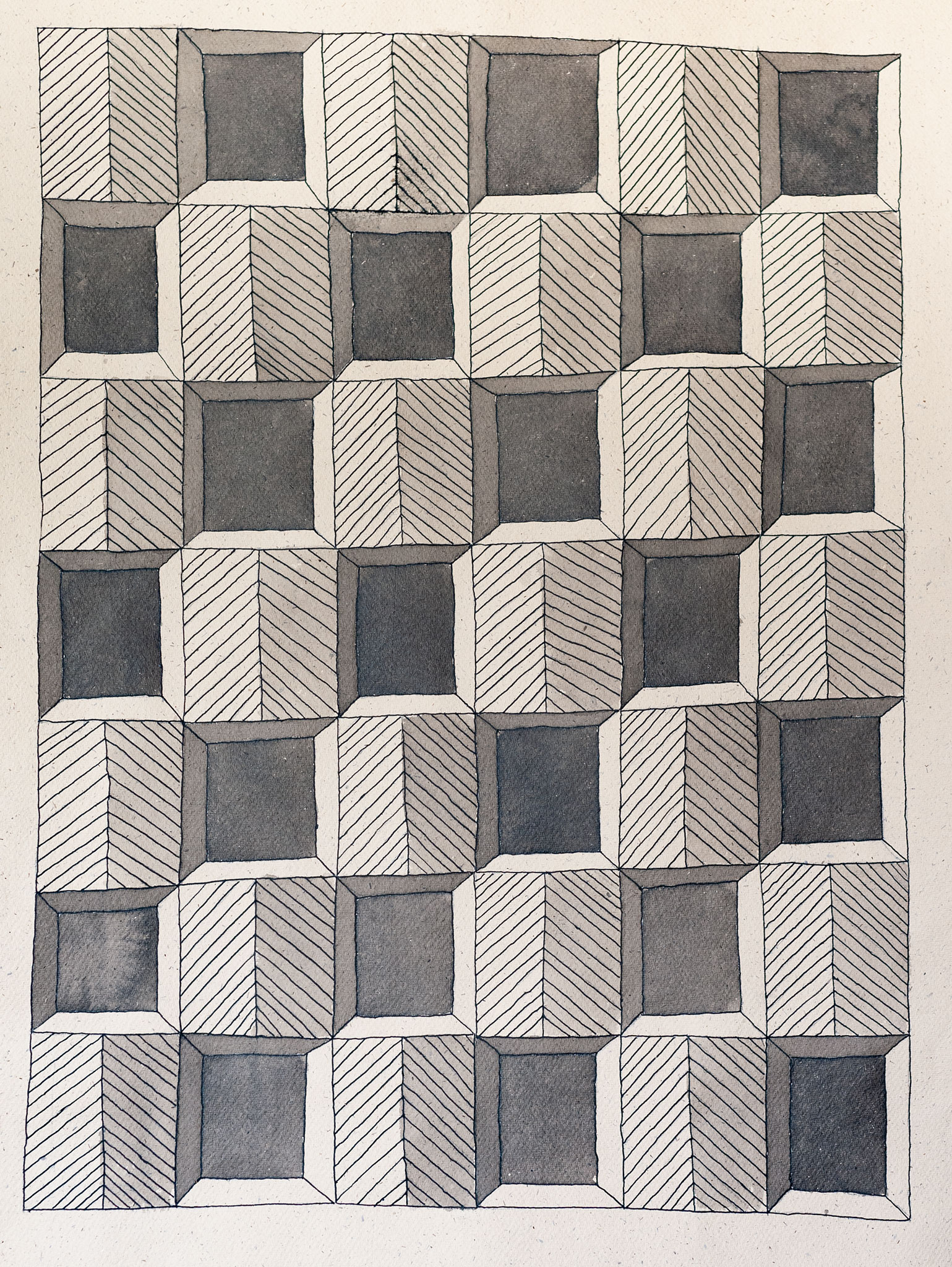 Free-hand relief grid graphite, watercolour and Indian ink 27x20
