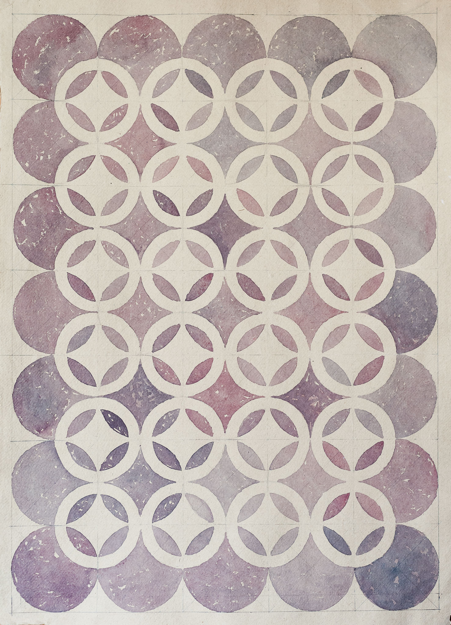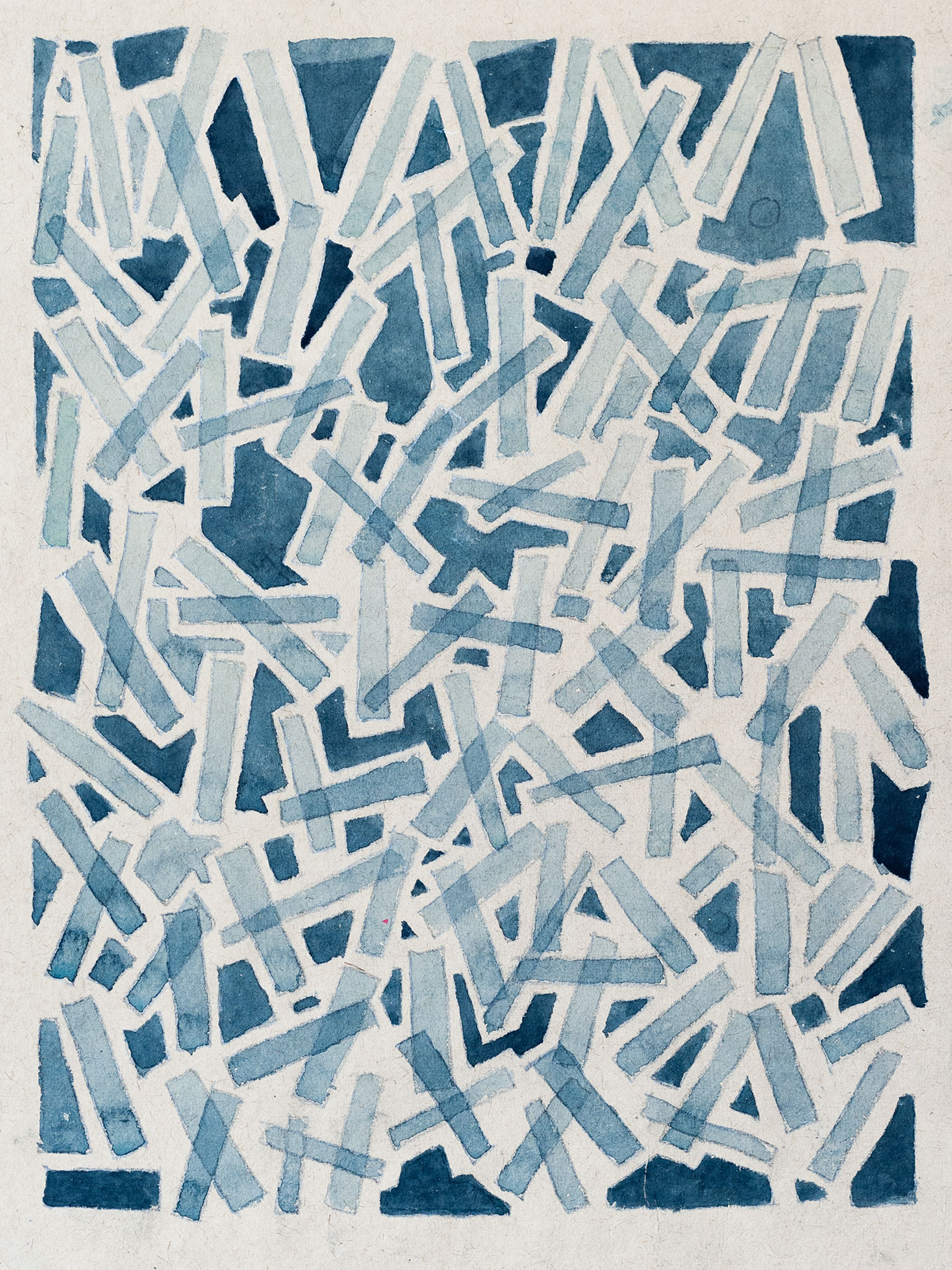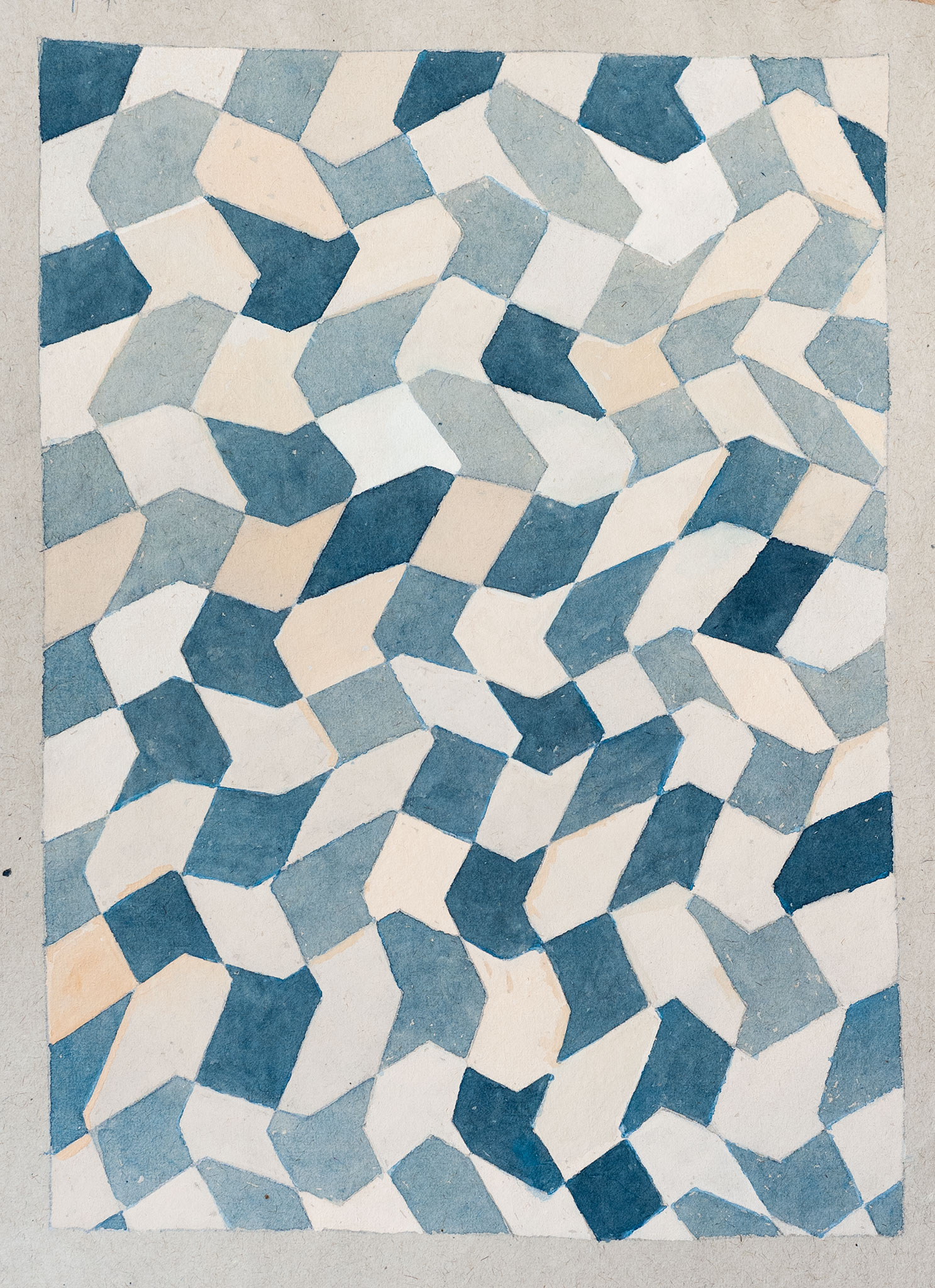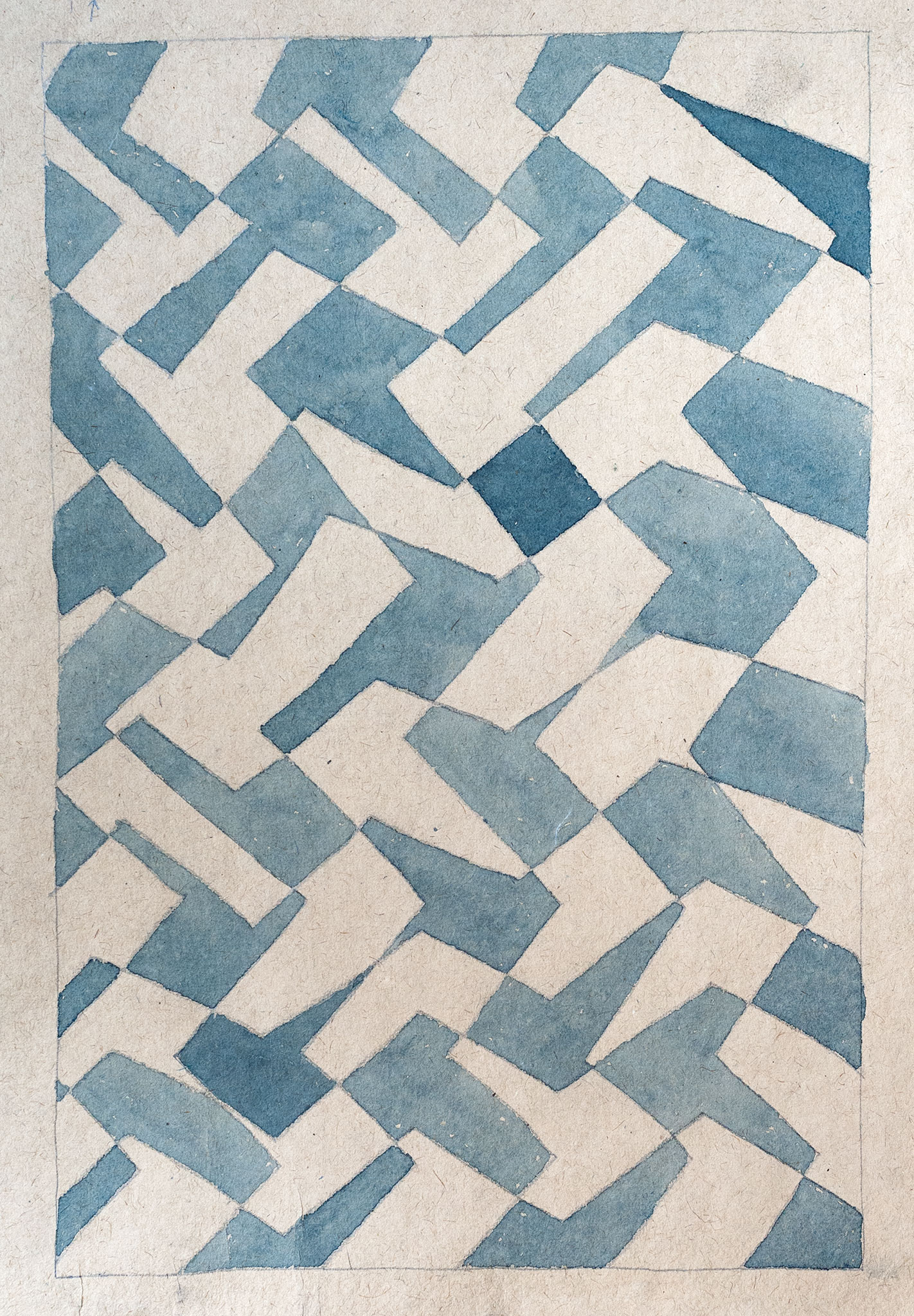 Free-hand relief grid graphite, watercolour and Indian ink 27x20
