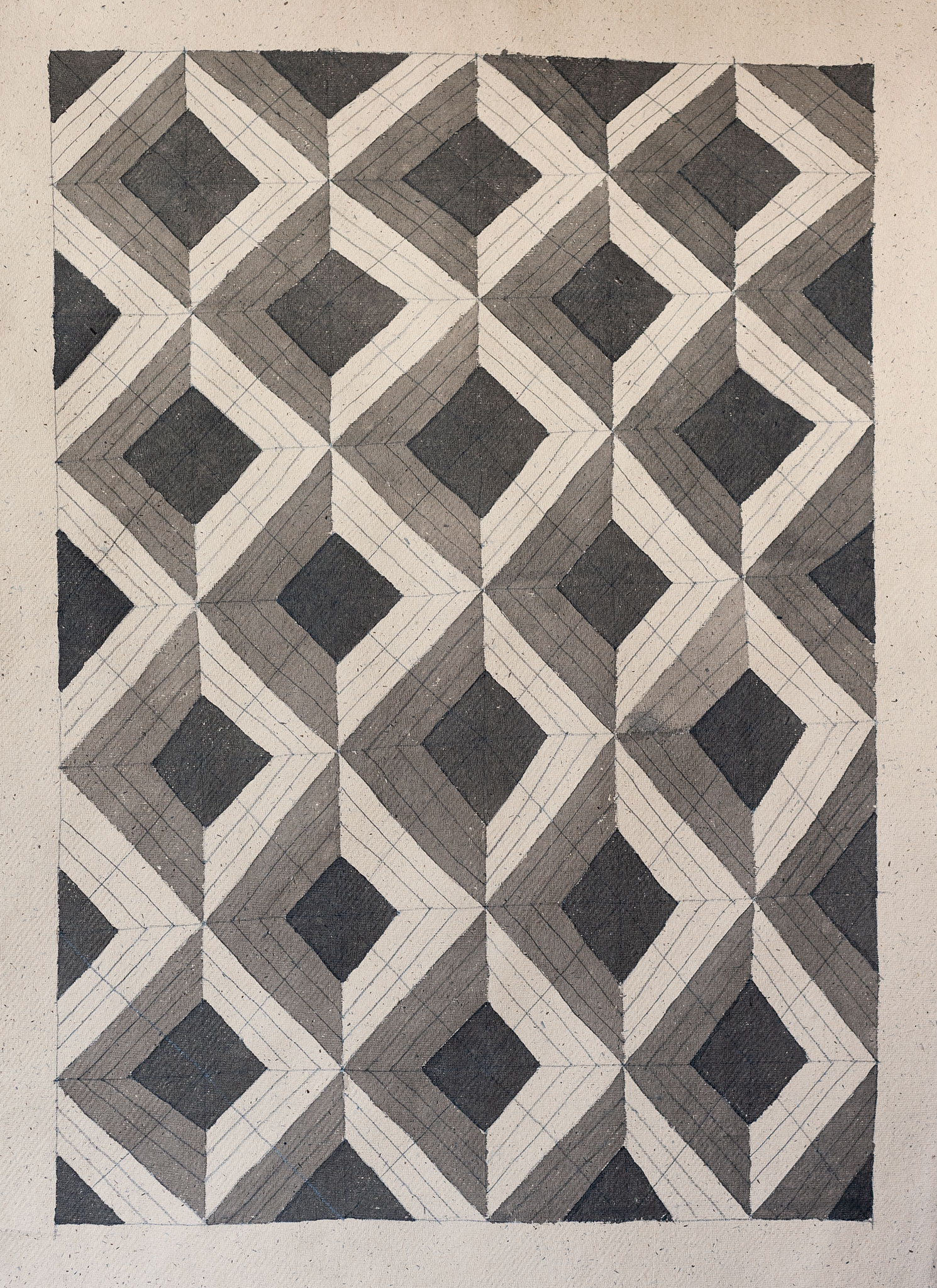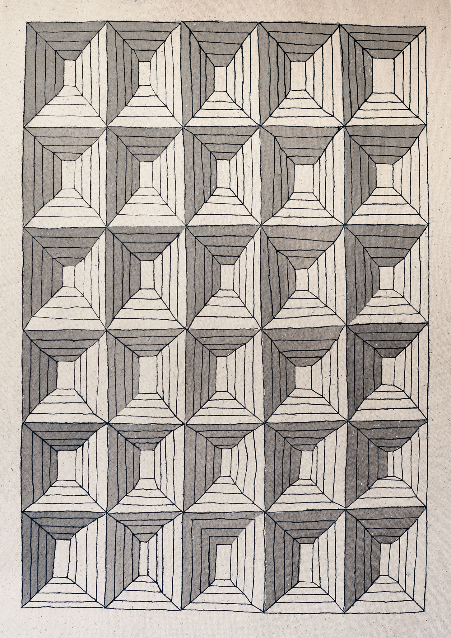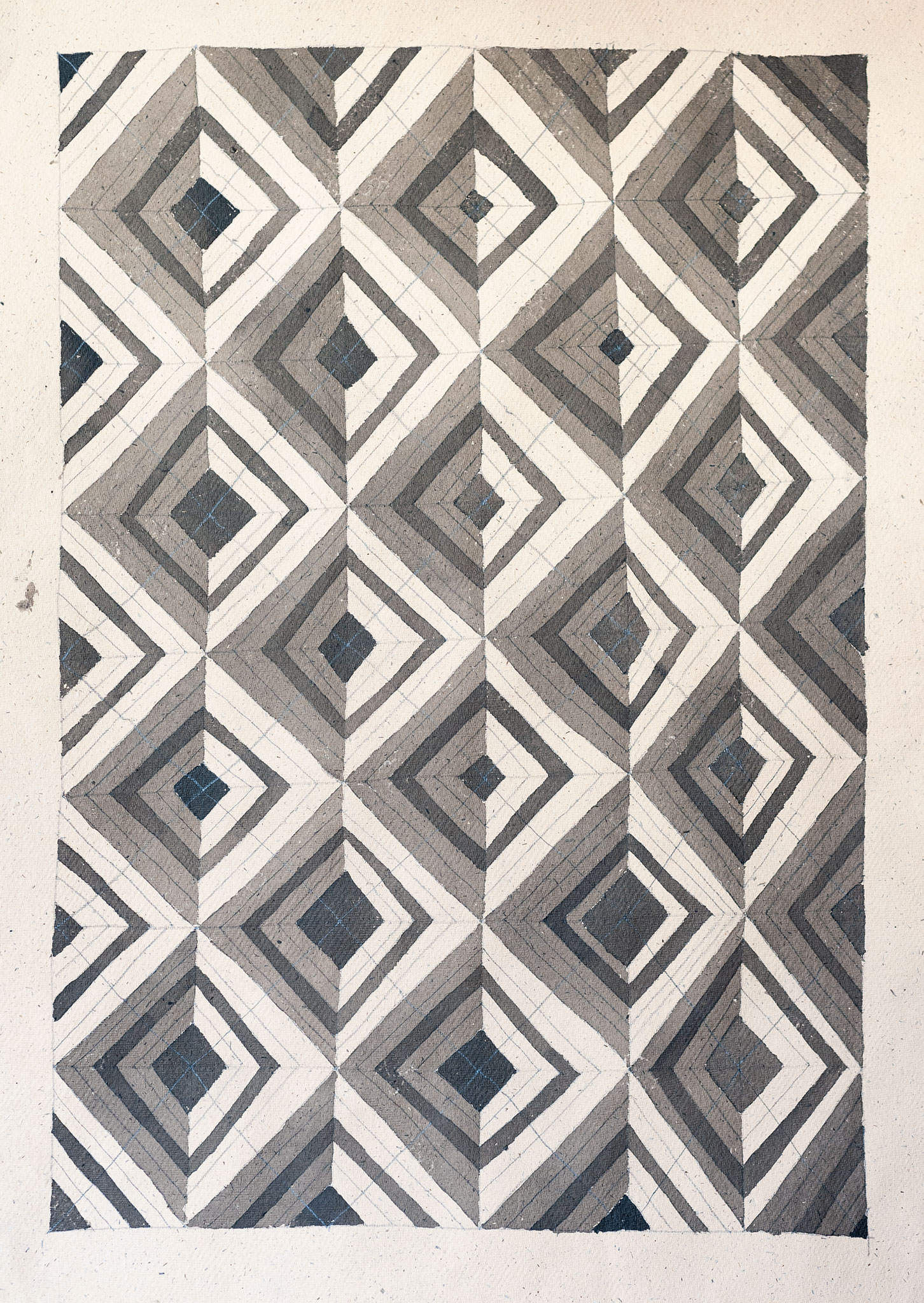 Disrupted lozenge grid graphite and Indian ink 24 x 19.5