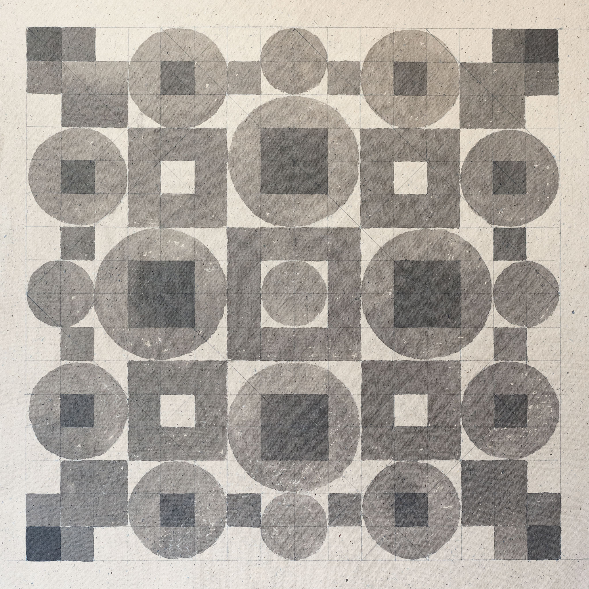 Squares and disks graphite and Indian ink 19.5 x 19.5