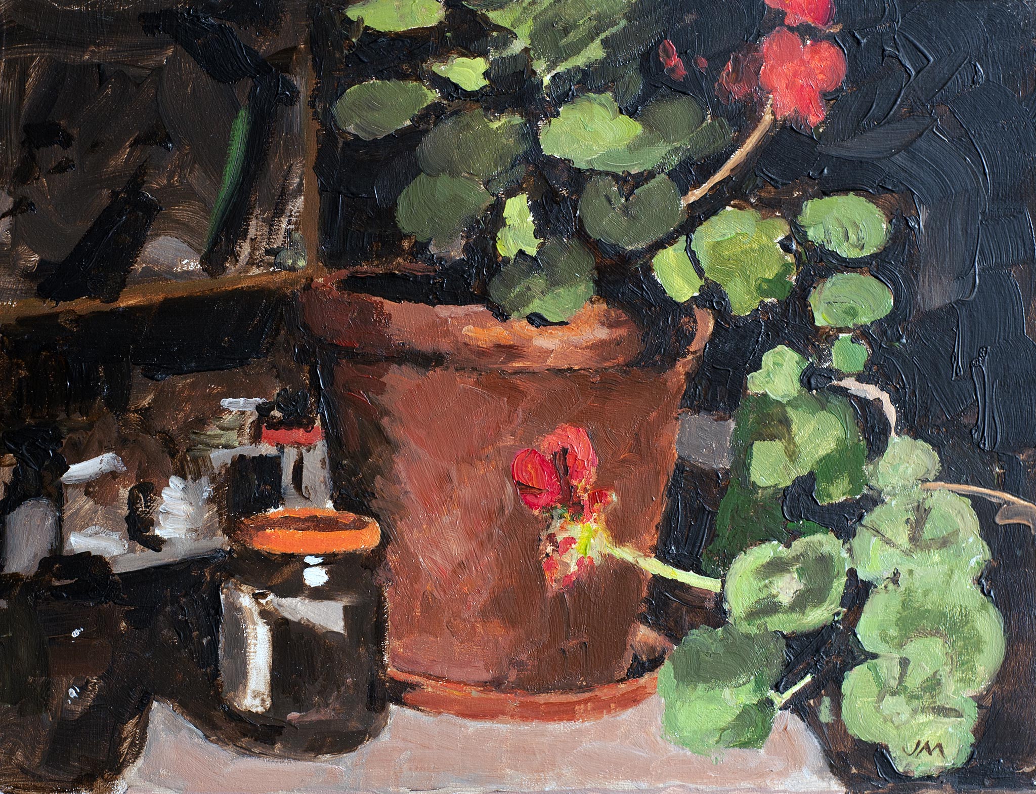 Still life with geraniums (2017) oil on panel 8 x 10