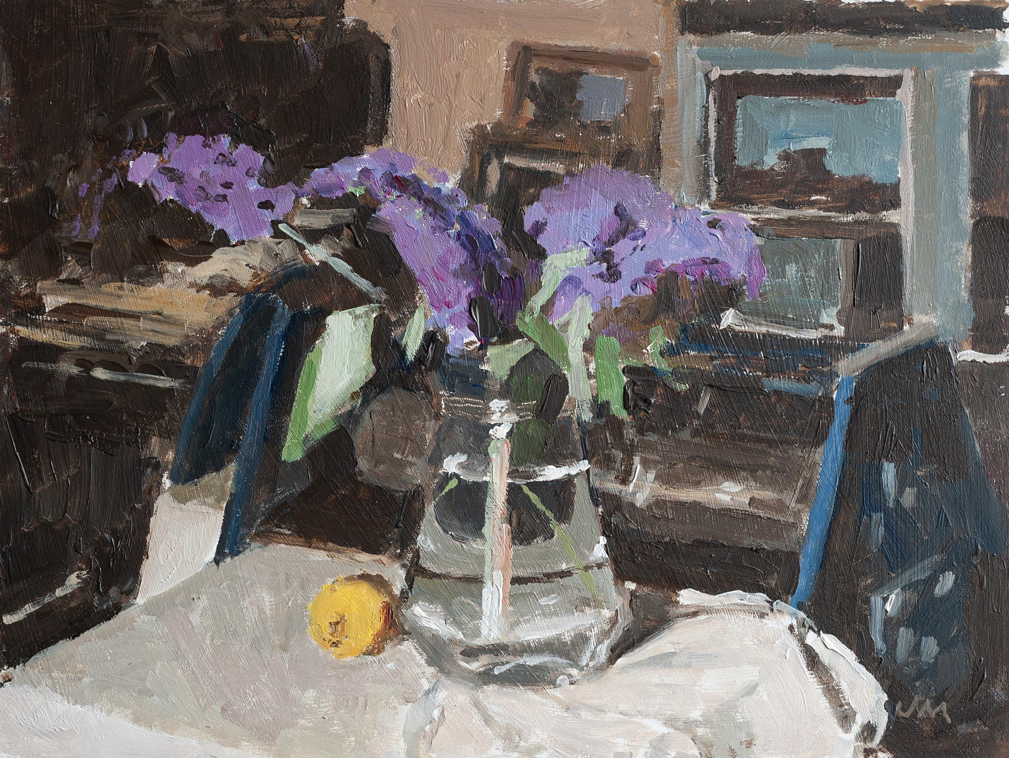 Bramleys in the sitting room (2013) oil on canvas board 8 x 6